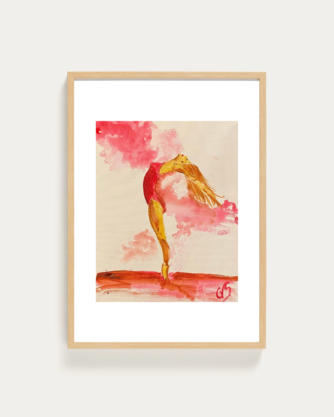 Cuadro decorativo realizado en acuarela sobre lienzo que captura la gracia y delicadeza de la danza. Sus suaves trazos y colores etéreos transmiten movimiento y elegancia, convirtiéndolo en una pieza artística ideal para salones, dormitorios o estudios creativos.