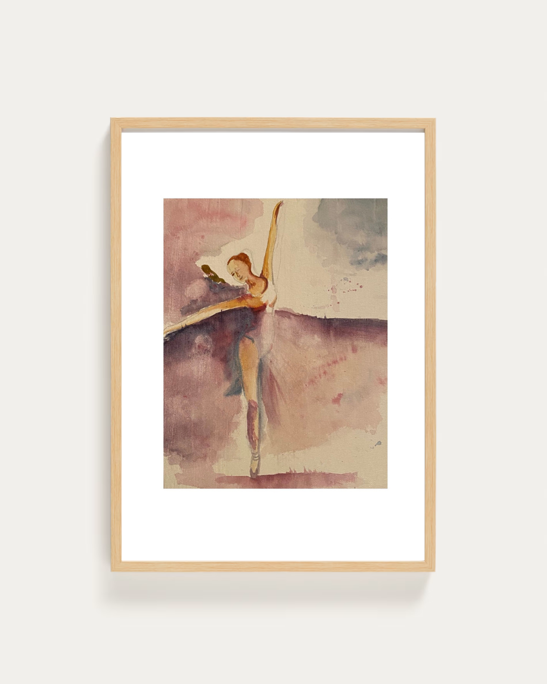 Cuadro decorativo realizado en acuarela sobre lienzo que captura la gracia y delicadeza de la danza. Sus suaves trazos y colores etéreos transmiten movimiento y elegancia, convirtiéndolo en una pieza artística ideal para salones, dormitorios o estudios creativos.