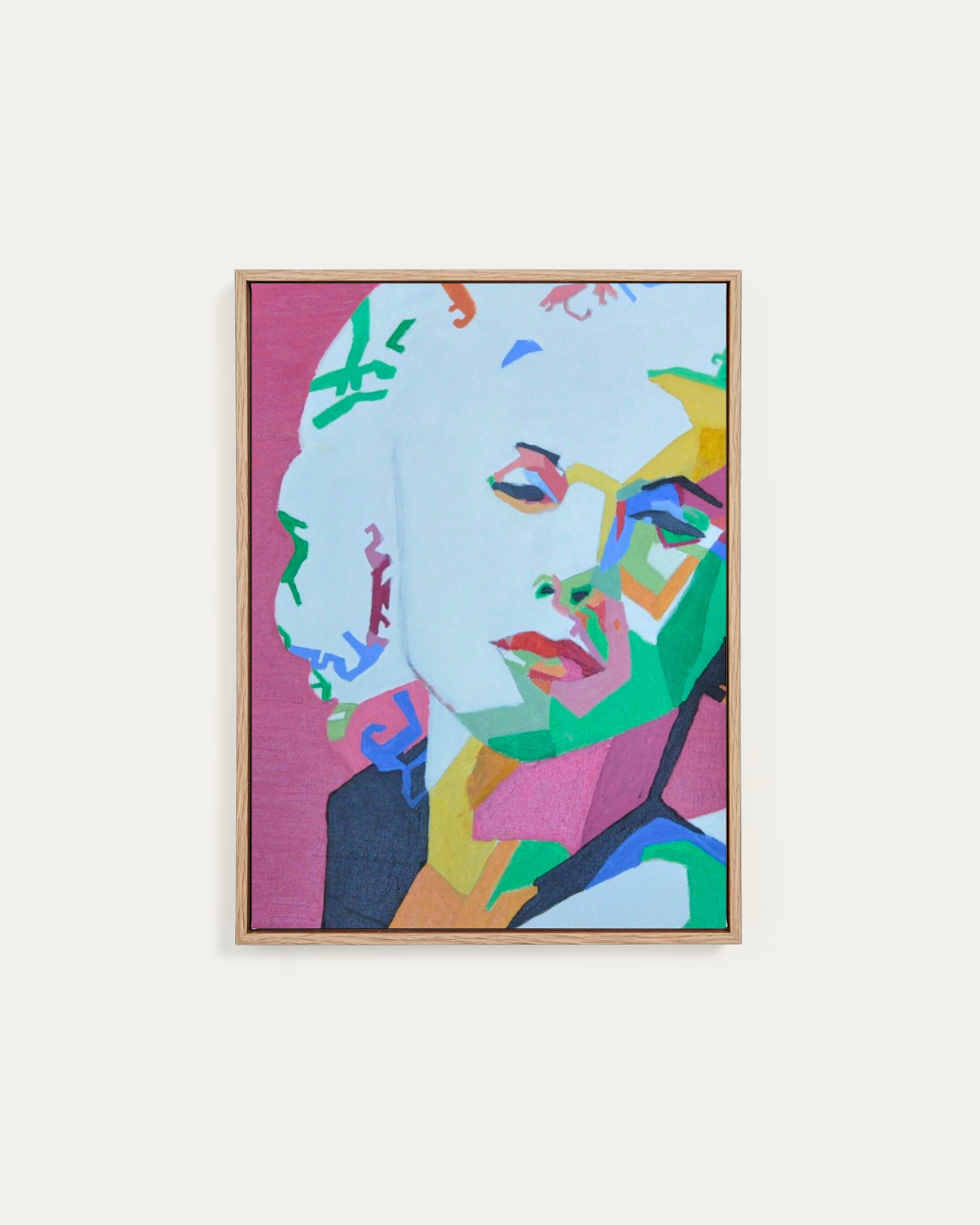 Cuadro decorativo realizado en óleo sobre lienzo que captura la icónica presencia de Marylin mediante colores vibrantes y trazos expresivos. Esta pieza con carácter y estilo aporta protagonismo y un toque artístico único, ideal para realzar cualquier espacio del hogar u oficina.