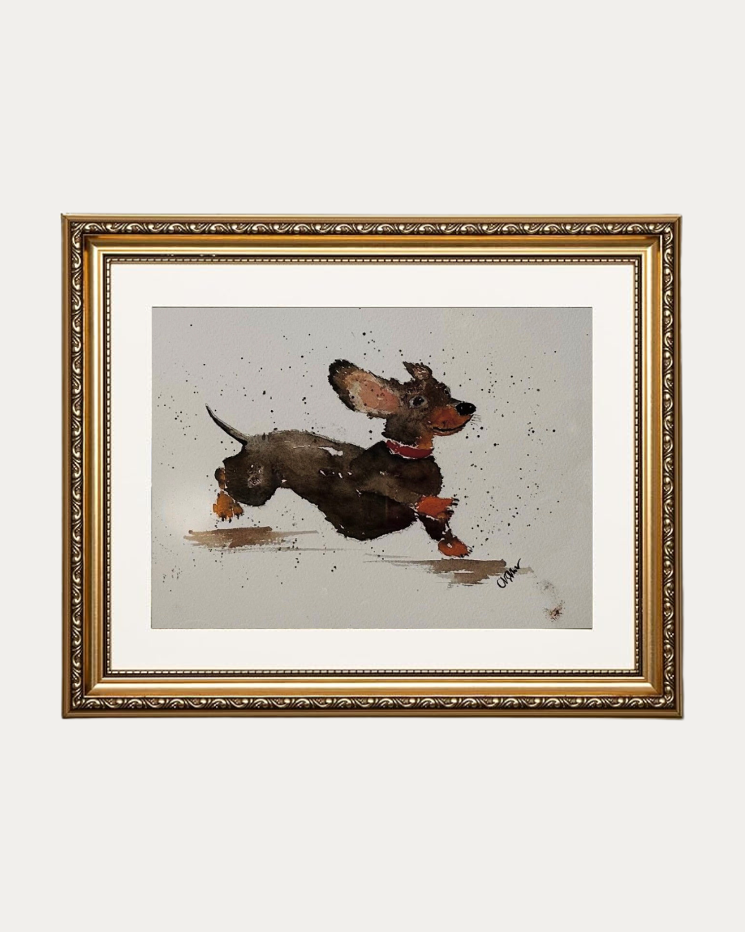 Cuadro decorativo realizado en acuarela que refleja ternura y carácter mediante la expresión de un perrito encantador. Sus suaves trazos y colores delicados aportan calidez y un toque artístico único, convirtiéndolo en una pieza ideal para cualquier rincón del hogar.