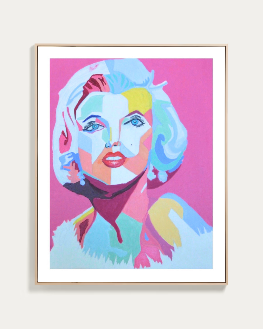 Cuadro decorativo realizado en óleo sobre lienzo que rinde homenaje a la icónica figura de Marylin. Sus colores vibrantes y trazos expresivos crean una pieza sofisticada y llamativa, ideal para aportar estilo, personalidad y un toque artístico a cualquier espacio